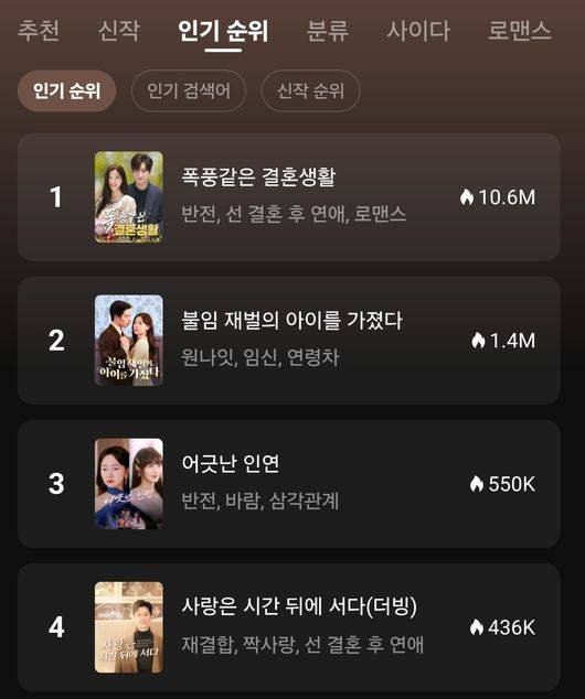 지난 4일 공개된 숏폼 드라마 '폭풍같은 결혼생활'이 드라마박스에서 단기간에 1천만 뷰를 돌파하며 화제를 모으고 있다. 특히 드라마박스 한국 지역 1위를 차지, 숏폼 드라마 시장에서 가장 주목받는 작품으로 자리매김했다.