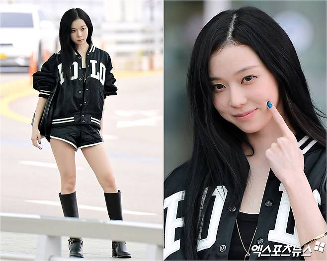 에스파 윈터가 공항에서 시크한 올블랙 패션으로 시선을 사로잡았다.
