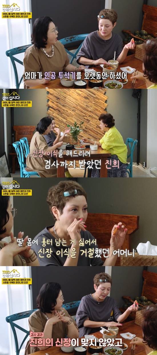 홍진희는 "하지만 엄마가 딸 몸에 흉터 나면 안 된다고 하지 말라고 했다. (검사) 했는데 안 맞았다. 다른 사람에게 (신장 이식) 받으려고 기다리다가 (돌아가셨다)"라며 당시를 회상했다.