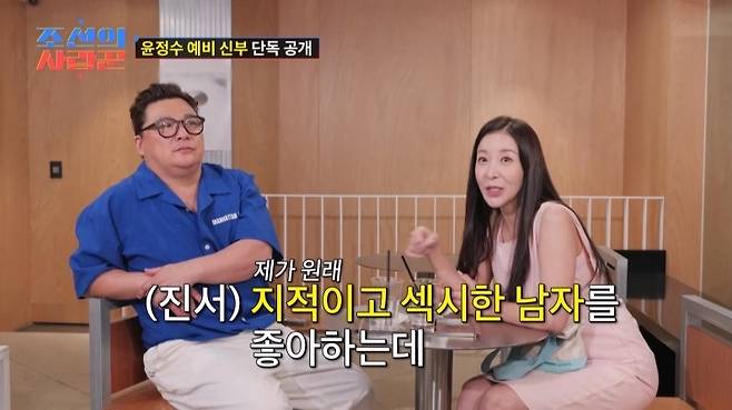 그는 "만날수록 오빠가 제 이상형에 맞아떨어졌다. 제가 볼 때 오빠는 섹시하고 지적이다. 제 이상형에 과분할 만큼 딱 맞는 것 같다"고 팔불출(?) 애정을 밝혔다. VCR로 이를 지켜보던 최성국은 "정수가 대체 어떻게 한 거냐"며 당황해 웃음을 자아냈다.