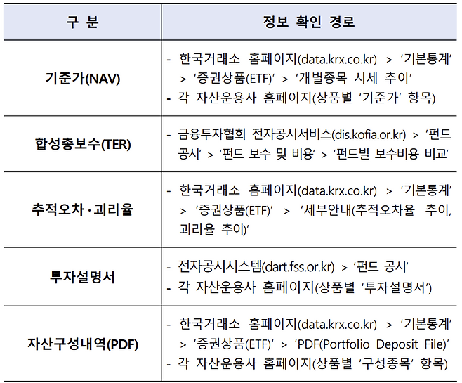 [ETF 관련 주요 정보 확인 방법. (사진=금융감독원)]