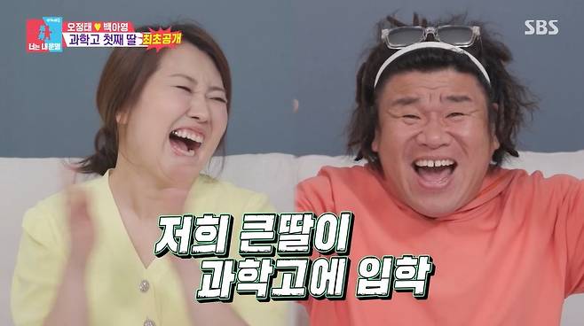 이어 오정태 백아영 부부가 등장했고, 오정태는 "저희는 그냥 뉴스에서 과학, AI 이런 말만 나오면 웃음이 나온다. 행복해서"라며 "저희 큰 딸이 과학고에 입학했습니다"라는 소식을 전했다.