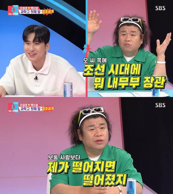 이어 오정태는 "저도 너무 신기해서 전문가한테 물어봤다. 우리 주변에 공부를 잘하는 사람이 없는데. 조상 중에 한 명이라도 공부 머리가 있다더라. 오 씨 쪽에 보니까 조선 시대 내무부 장관, 국무총리 하신 분이 있다더라. 왕 쪽은 아니다. 왕 머리는 아니다"라고 이야기했다.