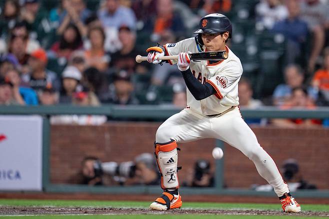 4-4로 맞선 6회말에는 이정후의 ‘시야’가 돋보였다. 무사 1, 2루에서 이정후는 상대 왼손 불펜 브랜딘 가르시아의 초구 시속 152㎞ 싱커에 기습 번트를 시도했다. 공은 투수, 포수, 3루수 사이로 향했고, 포수 가브리엘 모레노가 달려나갔지만, 주력을 갖춘 이정후를 의식하다가 공을 놓쳤다. 이정후의 기습 번트로 무사 만루 기회를 이어간 샌프란시스코는 크리스천 코스의 우익수 쪽 2루타, 패트릭 베일리의 좌익수 희생 플라이, 엘리오트 라모스의 좌중월 투런포로 5점을 뽑아 9-4로 달아나며 승기를 굳혔다. 이정후는 베일리의 희생 플라이 때 득점을 추가했다.