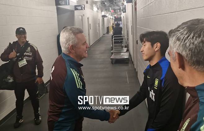 기자회견이 끝난 후, 아기레 감독은 복도에서 이강인과 만났다.