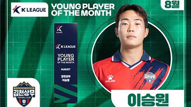 한국프로축구연맹은 오늘(9일) "김천 미드필더 이승원이 2025시즌 8월 '이달의 영플레이어 상'을 수상했다"고 발표했습니다.