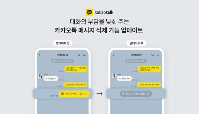 카카오는 최근 메시지 삭제 기능을 개편한 이후 일주일간 평균 이용 건수가 업데이트 이전보다 327% 급증했다고 밝혔다.