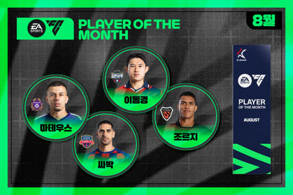 [풋볼리스트] 김동환 기자= 2025시즌 8월 'EA SPORTS 이달의선수상(EA SPORTS Player Of The Month)'의 주인공을 선정하는 팬 투표가 11일(목)부터 14일(일)까지 4일간 실시된다.