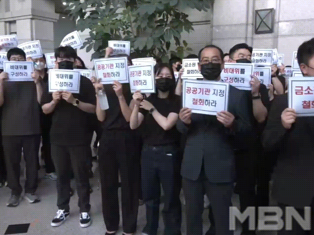 이들은 검은 옷을 입고 '금융소비자보호원 분리 철회', '공공기관 지정 철회', '비상대책위원회 구성'등을 외쳤습니다.