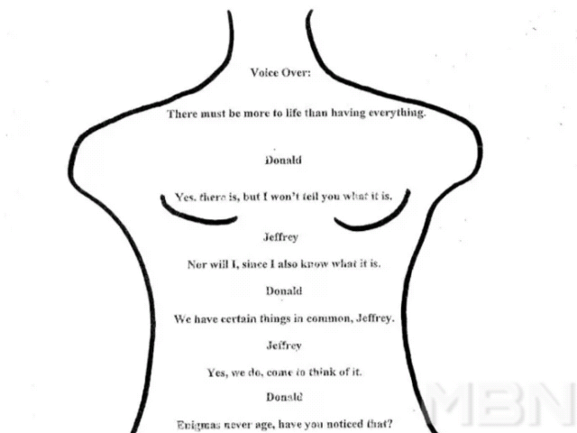 편지에는 여성 나체의 윤곽선 위에 '제프리'와 '도널드'가 대화하는 식의 짤막한 문장들과 "생일 축하해, 그리고 하루하루가 또 다른 멋진 비밀이 되길"이라고 적혀 있었습니다.