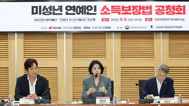 국민의힘 배현진 의원과 민주당 민형배 의원은 국회에서 공동으로 '미성년 연예인 소득보장법 공청회'를 개최했습니다.