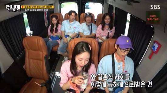 유재석과 지석진, 하하, 송지효, 양세찬 등 모두 "진짜냐"며 놀라워했고, 지석진은 "너는 예전에 태어났으면 독립군을 해야 한다"며 기사가 나는 당일까지도 결혼 소식을 숨겼던 김종국을 타박하기도 했다.