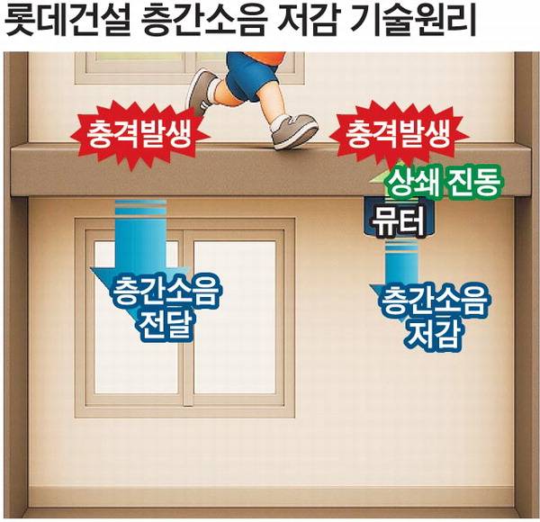 롯데건설은 또 최근 음향제어 전문기업인 ㈜세이렌어쿠스틱스와 함께 능동형 진동제어(Active Vibration Control) 기술을 활용한 층간소음 저감장치 시스템도 공동 개발했다. 이 시스템은 천장 마감 내부에 간단히 시공할 수 있어 신축 아파트뿐만 아니라 층간소음에 취약한 구축 아파트에도 적용이 가능하며 입주민들의 주거 및 생활환경을 근본적으로 개선할 수 있을 것으로 기대된다.