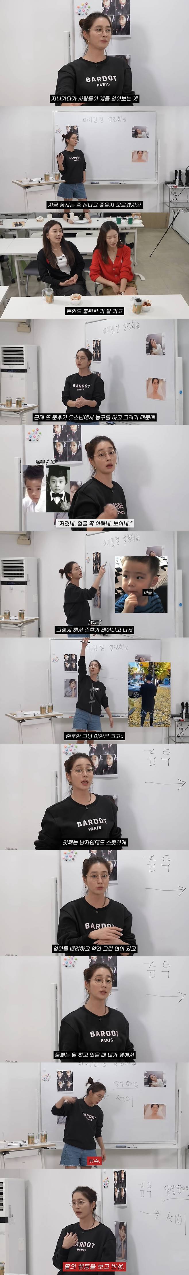 이날 이민정은 "아들 준후 얼굴 계속 안 보여 줄 계획이냐"는 질문에 "지나가다가 사람들이 걔를 알아보는 게 지금은 잠시는 좀 신나고 좋을지 모르겠지만, 나중에 중, 고등학생 되면 본인도 불편한 거 알거다"고 했다.
