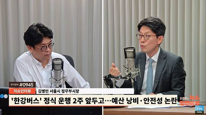 ◆김병민: 실제로 꼭 한번 가보시길 권해드려요. 지금도 한강 버스는 18일부터 운행을 하지만 선착장은 다 조성이 돼서 각 선착장에 가보면 1층에는 편의점, 그리고 2층에는 치킨을 먹을 수 있는 곳들, 3층에는 스타벅스 같은 카페라든지 아니면 LP판을 들을 수 있는 청음 카페 같은 부분들이 들어와 있는데. 한강을 즐기는 시민분들이 그곳을 이용하는 이용객들이 꽉꽉 차 있습니다. 그런 선착장에 이용하는 손님들의 수익들을 극대화시켜서 그 이익을 바탕으로 한강 버스가 진행이 되는 거거든요. 그래서 결국은 흑자로 운영될 수밖에 없는 구조를 갖고 있는데. 실제 한강버스를 타서 한강을 온전하게 누리고 난다면 아 우리가 왜 그동안은 이 한강을 온전히 이용하지 못했을까라는 생각을 가질 거라고 봅니다. 판단은 9월 18일부터 시작되는 한강버스를 타보시는 분들 시민들의 몫이니까 아마 이 방송을 통해서 아 한강버스가 18일부터 운행되는구나를 알리는 좋은 계기가 됐으면 좋겠습니다.
