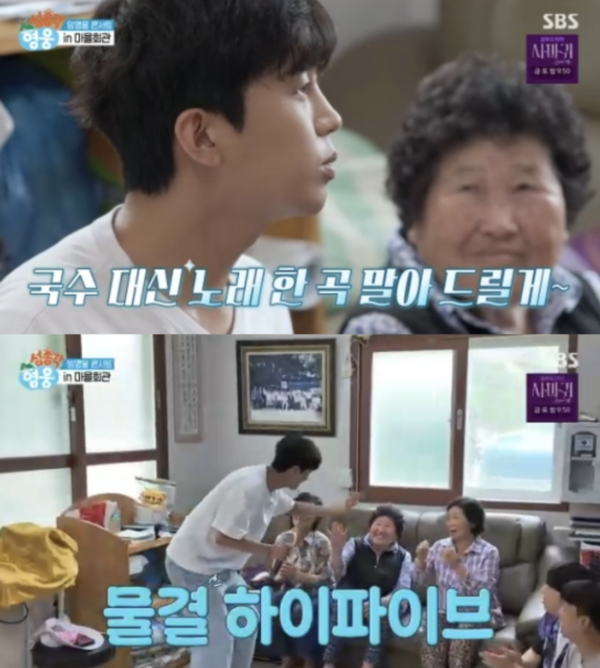 이날 임영웅은 "너무 잘 먹었다"라며 노래 한 곡을 불렀다. 마을회관 노래방 기계까지 동원해 미니 콘서트가 열린 가운데, 임영웅은 '연모', '고장난 벽시계' 등을 선곡해 열창했다.
