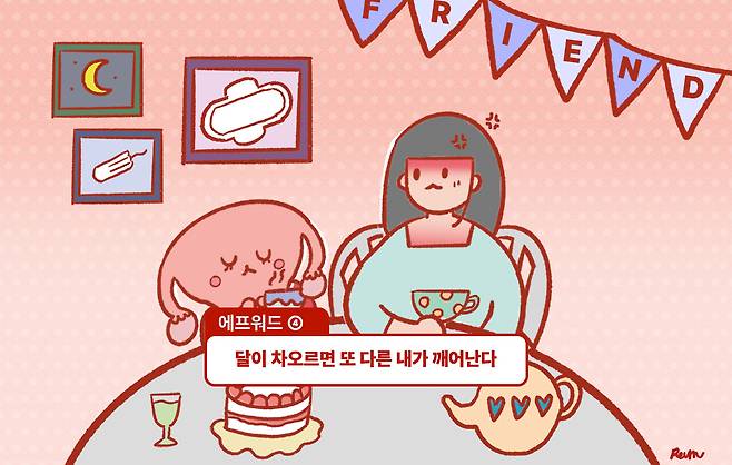 그렇지만 달라지는 건 분명 있다. PMS라는 용어를 만났을 때의 느낌은 이랬다. ‘내 몸이 이상한 게 아니구나’, ‘내가 미친 게 아니구나’. 고통이 생기면 덜컥 겁이 나는 게 자연스러운 심리다. 어릴수록, 내 몸에서 일어나는 변화에 대한 경험치가 부족할수록 낯선 고통은 두려움으로 증폭된다. 정확한 명명은 바로 그 두려움을 경감시키고 나와 비슷할 다른 여성을 바라보는 데 도움이 된다.