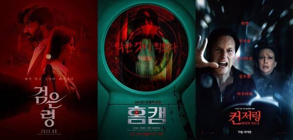 [스포츠한국 신영선 기자] 여름 막바지 더위를 쫒는 공포 장르가 관객들을 겨냥한다. 특히 올여름 공포물은 어느 해보다 더 강렬하고 무서운 소재와 현실적 공포감으로 주목받는다. 27일 '검은 령'이 개봉했고, 9월 3일 '컨저링: 마지막 의식'이 바통을 이었다. 9월 10일에는 생활 밀착형 공포 '홈캠'이 합류한다. 샤머니즘을 한데 엮은 오컬트부터 일상 공간을 파고드는 홈 보안 카메라를 활용한 공포까지 스펙트럼이 뚜렷하게 갈리는 세 작품이 여름 막바지 관객의 취향을 정조준한다.