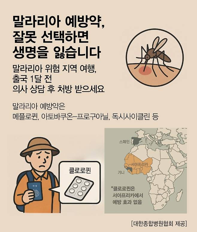 사하라 이남 아프리카 등 서아프리카 대다수 지역은 수십 년 전부터 클로로퀸 내성 말라리아가 100% 발생하는 고위험 지역으로 세계보건기구(WHO)와 미국 질병통제예방센터(CDC) 역시 해당 지역 여행 시 클로로퀸은 예방효과가 없어 사용을 권장하지 않는다고 병원 측은 전했다. 올바른 예방 정보를 확인하지 않고 잘못된 약을 먹었고 예방 효과는 전혀 없었던 셈이라고 덧붙였다.