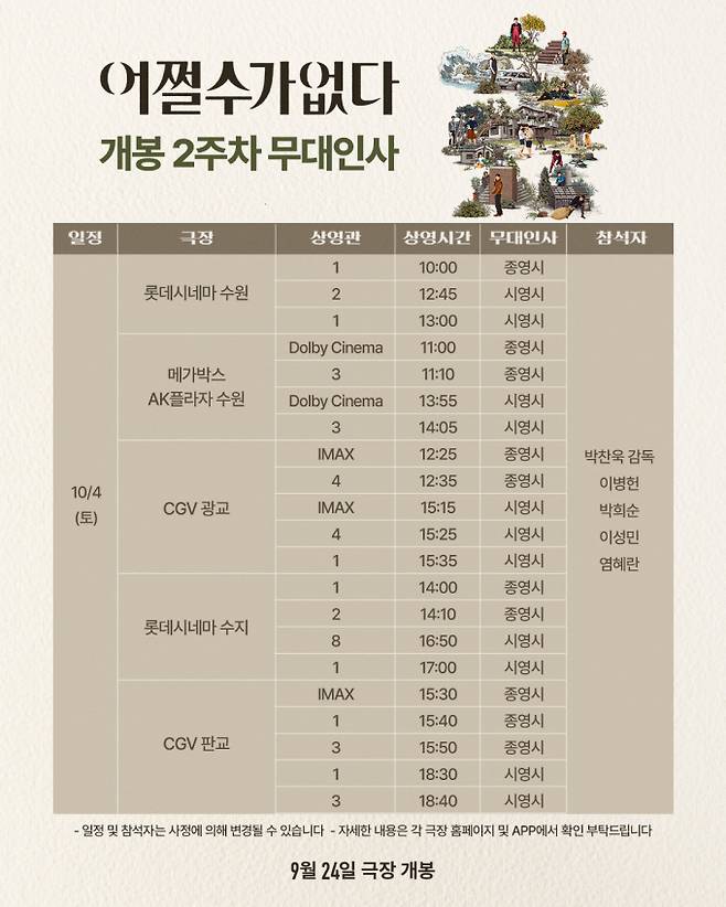 ‘어쩔수가없다’ 무대인사 일정