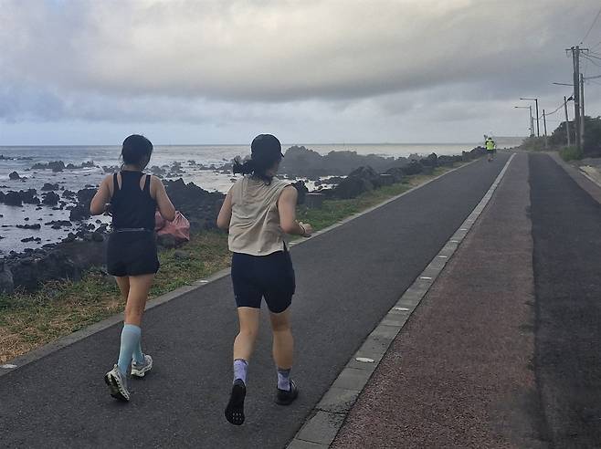 이 길의 매력은 단순히 '바다가 보인다'는 데 있지 않다. 달리다 보면 길 위로 바람이 밀려온다. 계절마다 다른 향기와 공기, 그리고 동네 사람들과 제주를 여행온 관광객들의 발걸음이 얽혀 있는 길. 그래서 나는 이곳을 '성지'라 부른다. 신앙적인 의미가 아니라, 내가 하루를 새롭게 얻는 장소라는 의미에서.