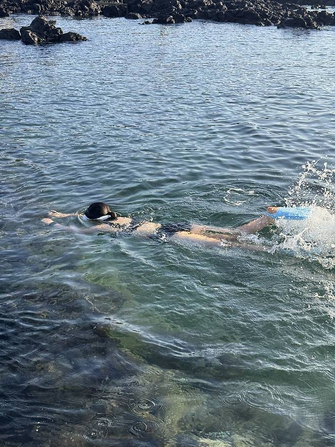| ▲ 제주 서귀포 법환포구 러닝코스를 달리고 난 후 천연 수영장 막숙 용천수에 몸을 담그면 땀과 피로가 한꺼번에 사라진다. |