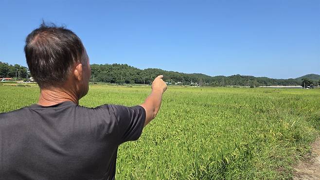 이 들녘은 오봉저수지에서 농업용수를 공급받아왔으나, 최근 물 공급이 차단되면서 더 이상 관개할 수 없는 상황에 놓여 있다.