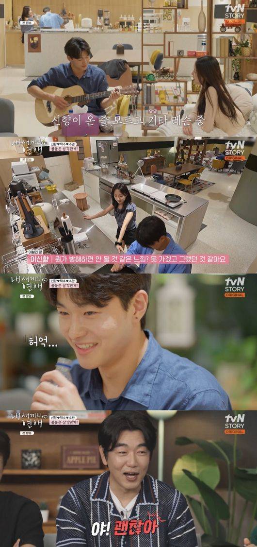 이신향은 “딱 1층 내려와서 거실에 갔는데 탁수 님이랑 수완 님 두 분이 앉아 계셨고 기타 쳐주고 있고 그거 듣고 있고 그랬다. 아 수완이가 탁수 님한테 갔구나 몰랐다. 수완이어서 조금 뭔가 의외였다. 그런 생각을 했다”라고 전했다.