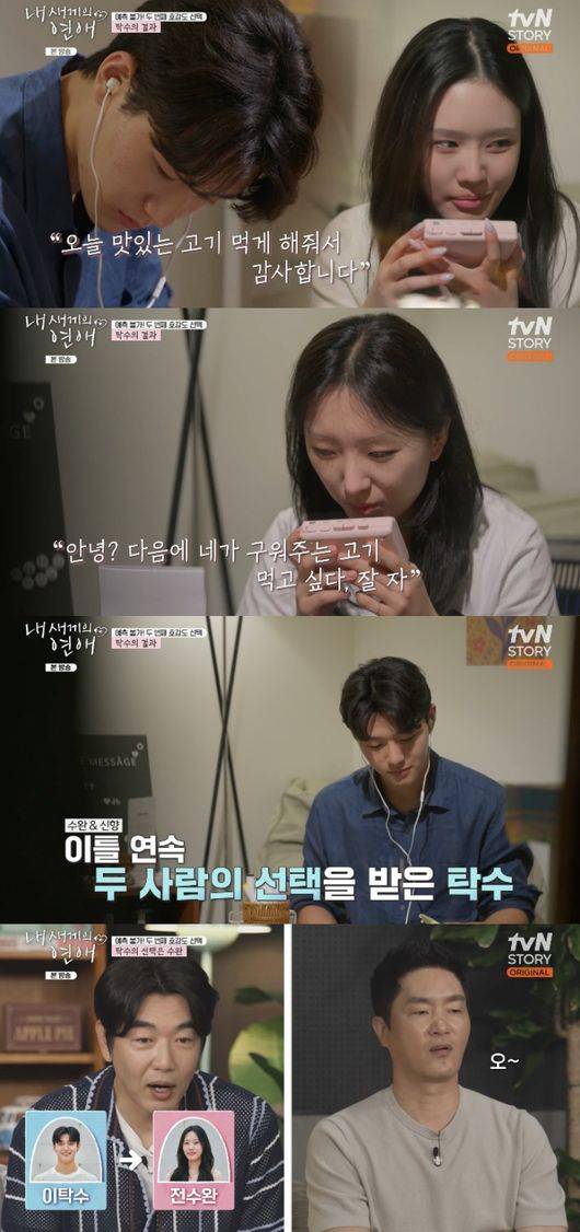 한편, 두 번째 호감도 선택이 공개됐다. 이탁수는 전수완과 이신향 사이를 고민한 끝에 누군가를 선택했다. 이신향 역시 “탁수 님은 데이트 할 때 밥 먹으면서 한번 해봐야겠다 했는데 그 순간 나가게 됐고 오히려 준호 님과 이야기 한 게 리프레시 하게 돼서 너무 고민됐다”라고 말했다.