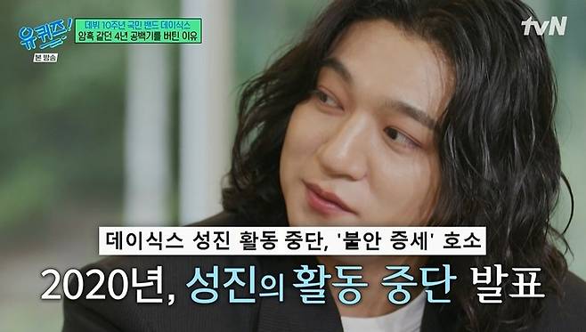 2020년 불안 증세를 호소하며 활동을 중단했던 성진은 "2017년 (매달 컴백했던) '에브리데이 데이식스' 프로젝트가 끝난 시점부터 쉼이 필요했던 것 같다. 근데 쉼 없이 달려야 했고, 쉬는 게 민폐라고 생각했다"라며 "숨이 잘 안 쉬어지는 시기였다. 티 내고 싶진 않았는데, 곪다가 터져서 스스로를 챙겨야 한다는 걸 깨달았다"라고 고백했다.