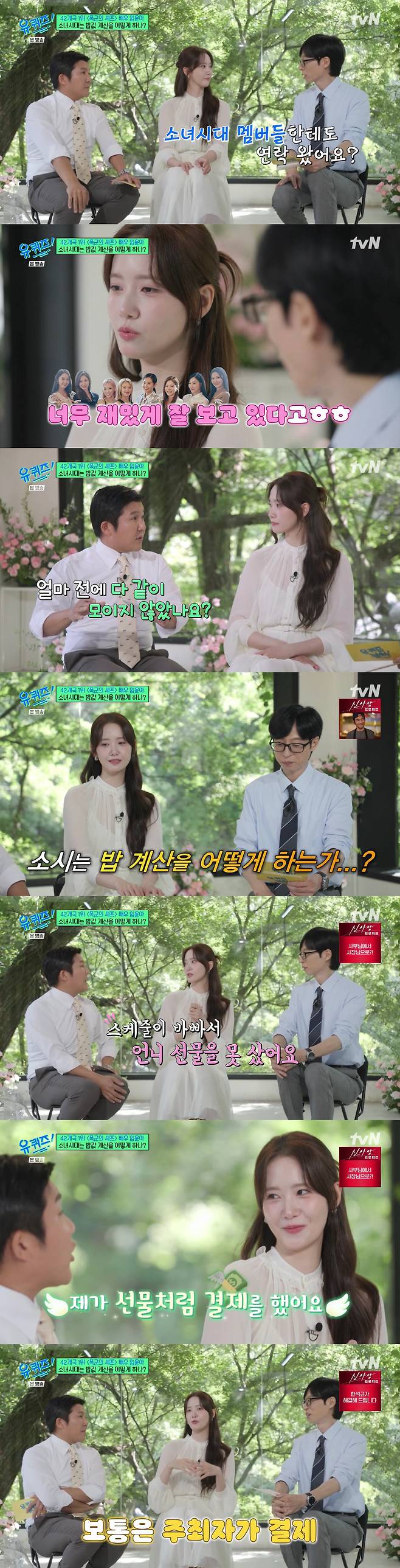 윤아 "소녀시대 완전체 모임 밥값? 보통 주최자가 결제한다"(유퀴즈)