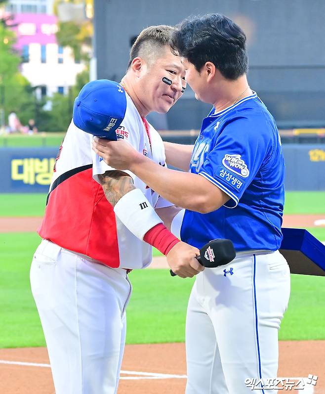 과거 삼성 왕조 시절 함께 뛰었던 옛 동료 최형우가 개인적으로 준비한 감사패도 건넸다. 최형우는 감사패를 전달하는 과정에서 눈시울을 붉혔다.