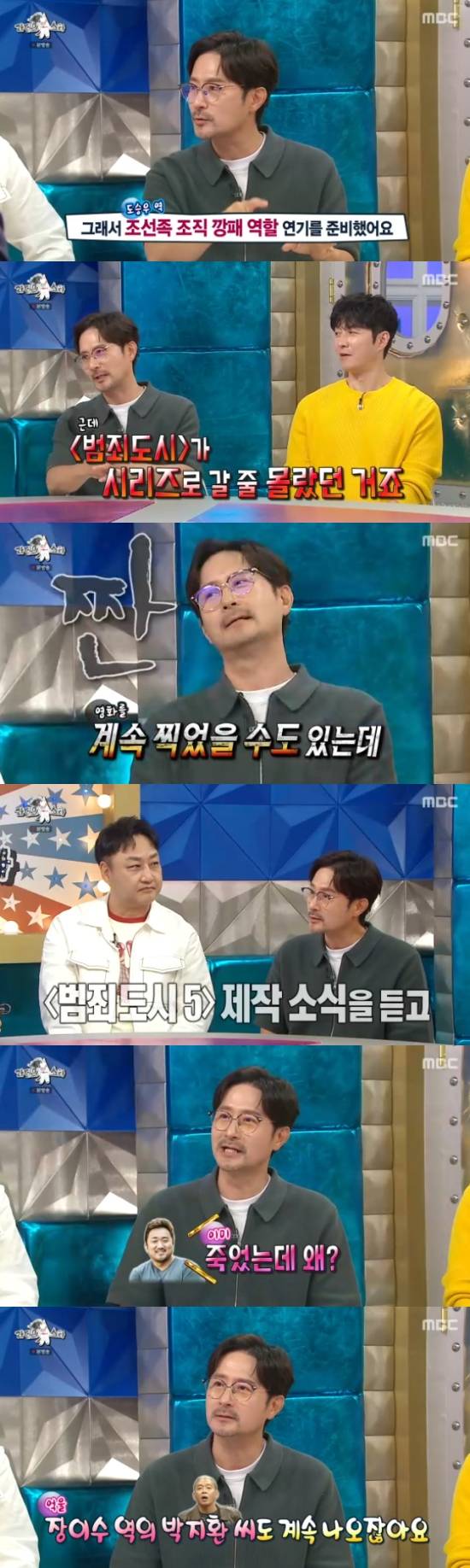 임형준은 "마지막이란 생각으로 '범죄도시' 미팅을 갔다. 그 때 형사 역할 제안을 받았지만, 조선족 깡패 역할로 오디션을 봐서 제가 원하던 역할을 하게 됐다. 근데 그 캐릭터가 죽지 않았냐. '범죄도시'가 이렇게 시리즈로 갈 지 몰랐다. 그냥 형사 역할을 했으면 계속 출연을 했을텐데"라면서 웃었다.