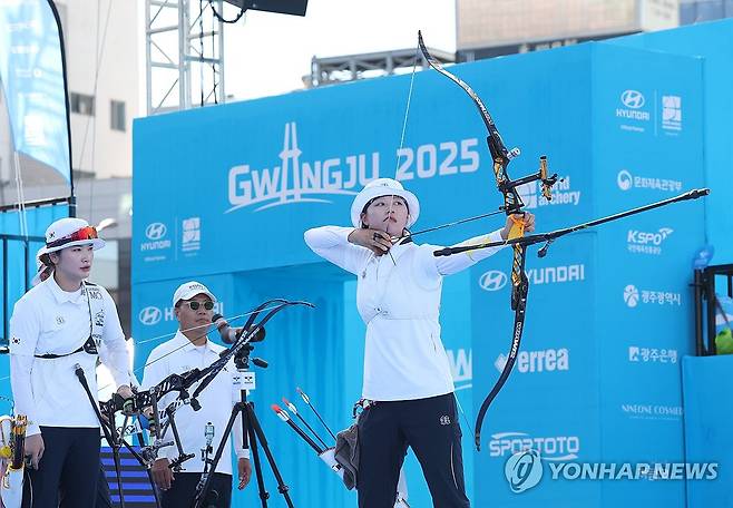 경기 후 믹스트존(공동취재구역)에서 만난 안산은 "광주에서 열리는 세계선수권이라 우리가 집중해서 훈련을 많이 했다. 아쉽게도 4강전에서 슛오프까지 간 끝에 조금 아쉬운 결과가 있었다"라고 말했다.
