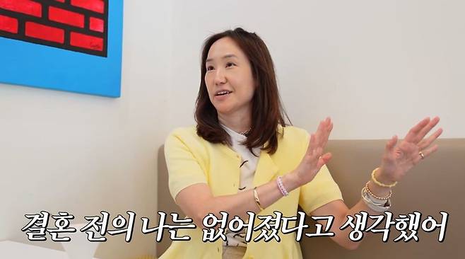 최근 방송인으로 활발하게 활동 중인 강주은은 '전성기'라는 유튜브 제작진의 말에 "너무 신기한 게 나도 이게 맞나 싶다. 얼마 전에 캐나다에 다녀오지 않았나. 결혼 후 나는 결혼 전의 나는 없어졌다고 생각했었다. 결혼하는 순간 이게 내 현실이고 나의 지난 추억들은 나와 상관없는 것들이라 생각했다. 그래서 인생이 슬프게 느껴졌었다"라고 고백했다.