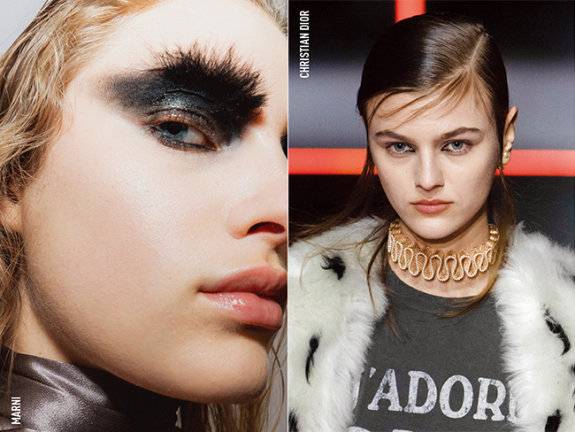 특히 샤넬 쇼에서는 마치 눈꼬리 부근에 블랙 잉크를 1~2방울 떨어뜨린 듯한 아이 메이크업을 선보였고, 디올의 모델들은 선명한 블랙 아이라이너를 눈 앞머리에만 터치해 눈매를 길고 에지 있게 강조했다.