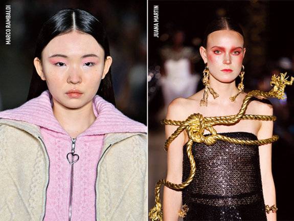 핑크의 기분 좋은 에너지는 겨울까지 이어진다. 가을과 겨울의 핑크는 입술과 치크를 넘어 눈가 등 얼굴 전방위적으로 활약할 예정. 마르코람발디의 모델은 눈두덩이 가득 부드러운 파스텔 핑크로 물들였고, 보라악수 컬렉션에서는 채도 높은 핑크 컬러를 두 뺨 길게 채색해 사랑스러운 홍조를 연출했다. 이 외에도 후아나 마르틴, 캐롤라인후, 피에르가르뎅 등 다수의 쇼에서 다채로운 핑크 메이크업을 확인할 수 있다.