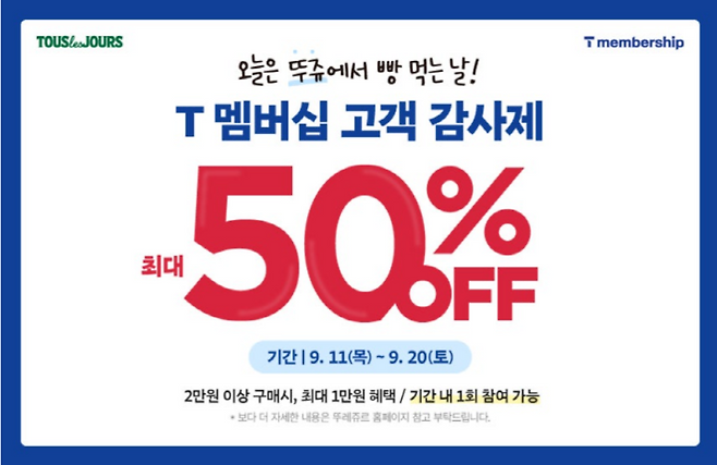 뚜레쥬르, T멤버십 고객 감사제…"최대 50% 혜택"