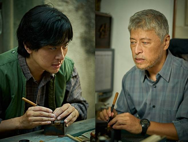 권해효는 시각장애를 가졌음에도 전각 장인이 된 임영규를 연기했으며, 박정민은 그런 임영규의 아들 임동환과 임영규의 젊은 시절 모습을 연기하며 1인 2역을 소화했다.
