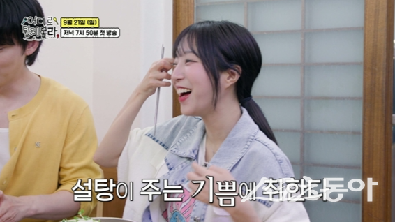 공개된 영상은 조나단이 설탕을 듬뿍 넣은 막국수와 감자전을 선보이며 시작된다. 설탕 범벅 조합에 도전한 조나단은 ‘폭주 먹방’으로 현장을 초토화했고, 이를 지켜보던 김대호·안재현·쯔양도 결국 한 입 맛본 뒤 웃음을 감추지 못했다. 쯔양은 “천재다 진짜”라며 감탄한 뒤 오히려 조나단을 능가하는 ‘설탕 먹방’을 펼치며 강철 췌장 면모를 입증했다. 김대호가 “혈당 스파이크 한 번도 온 적 없어?”라며 걱정했지만 쯔양은 끄떡없는 먹방 텐션을 유지했다.