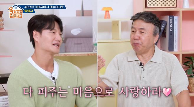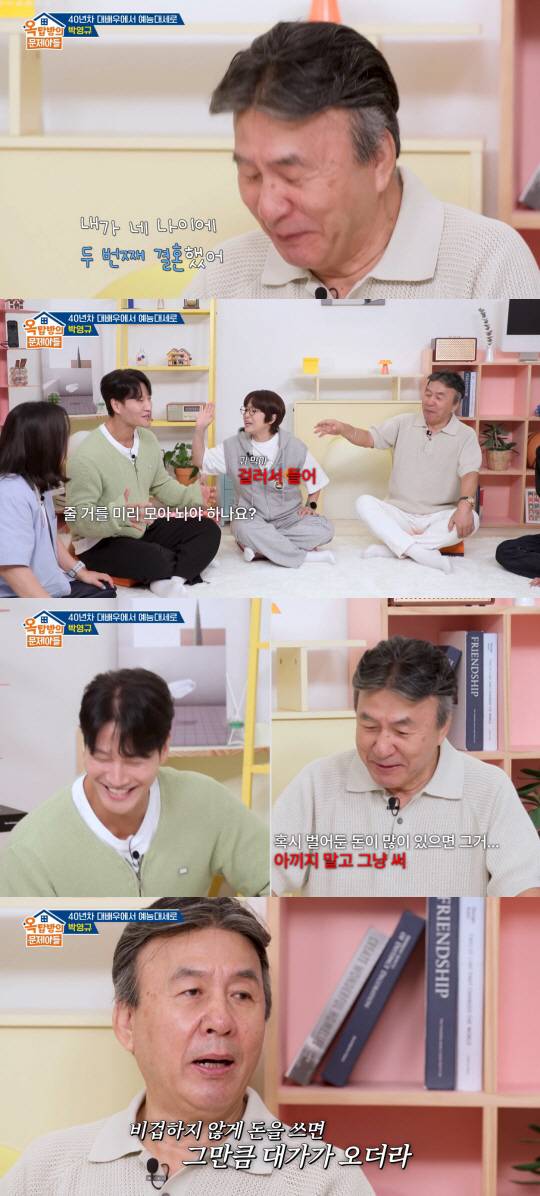 이에 김숙은 "모든 통장을 아내에게 다 맡겼냐"며 질문했고, 박영규는 "그렇지는 않다. 내가 살아보니까 조심스럽게도 하다"고 답해 웃음을 자아냈다. 그러면서 "내가 하는 얘기는 다 주라는 건 아니고 그런 마음으로 살라는 뜻이다. 쭈뼛쭈뼛하지 말라는 거다"라고 강조했다.