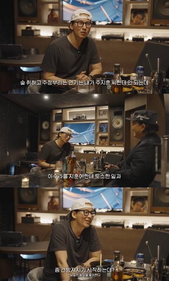 이어 연기 이야기를 나누던 김남길은 갑자기 "내가 주지훈한테 감히 다른 연기는 자부하지만, 술 먹고 취해 주정부리는 연기는 주지훈한테 안 되는 것 같다"며 뜬금없는 디스로 모두를 폭소하게 했다.