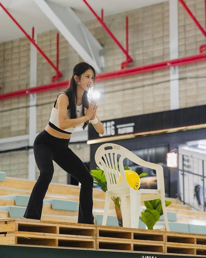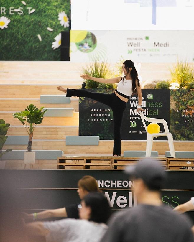 공개된 사진에서 남지현은 화이트 크롭톱과 블랙 레깅스로 슬림하면서도 건강미 넘치는 피트니스 패션을 선보였다. 강의 중인 남지현은 발레 바(barre)와 의자, 소형 볼 등 다양한 도구를 활용해, 우아하면서도 집중력 있는 바레 동작을 시범 보이고 있다.