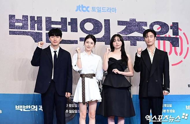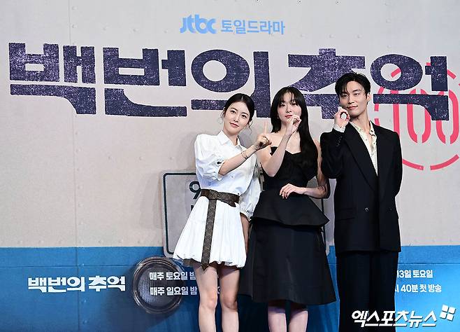 11일 서울 구로구 신도림 더 링크 호텔에서 JTBC 토일드라마 '백번의 추억' 제작발표회가 진행됐다. 이 자리에는 김상호 감독, 김다미, 신예은, 허남준이 참석했다.