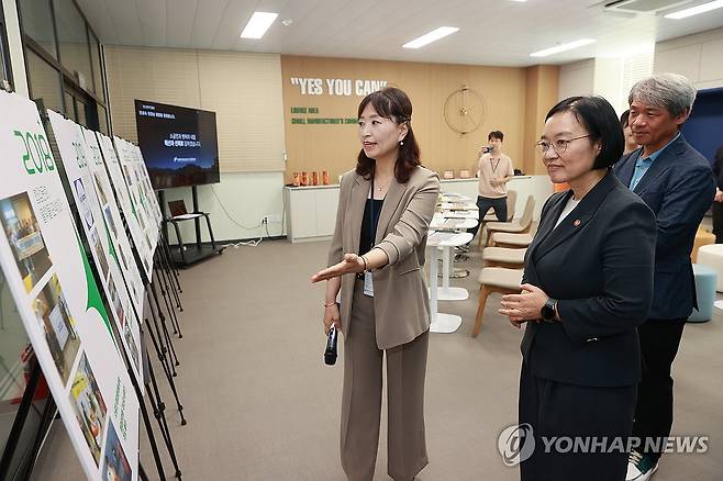 (서울=연합뉴스) 한성숙 중소벤처기업부 장관이 11일 전북 전주 전주대장간을 방문해 소공인 공동기반시설 현장을 둘러보고 있다. 2025.9.11 [중소벤처기업부 제공. 재판매 및 DB 금지]