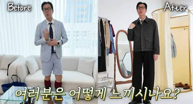 영상에선 김영철이 훈남 메이크업을 받고 180도 변신하는 모습이 담겼다. 김영철은 현재 스타일리스타 없다며 “2015년부터 없었다. 당시 출연했던 ‘진짜사나이’ 때는 군복, ‘아는 형님’은 교복, ‘나 혼자 산다’는 사복인데 그때 제가 소속사에 제안을 했다. ‘스타일리스트에게 드는 비용이 얼마 인가, 그걸 절 줄 수 있나. 내가 해보겠다’라고 했다. 저는 그 10여년의 시간이 나를 만드는 거라고 생각했는데 이 패션이 괜찮은지 아님 다시 평범하게 돌아가는 게 좋은지 물어보고 싶다”라고 밝혔다.