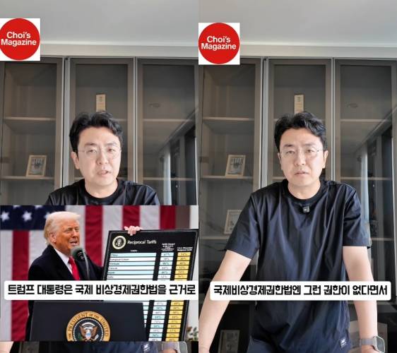 공개된 영상 속 최동석은 도널드 트럼프 미국 대통령의 관세 정책에 대해 설명하고 있으며, 마치 뉴스를 진행하는 것처럼 진지한 표정이 눈길을 끈다.
