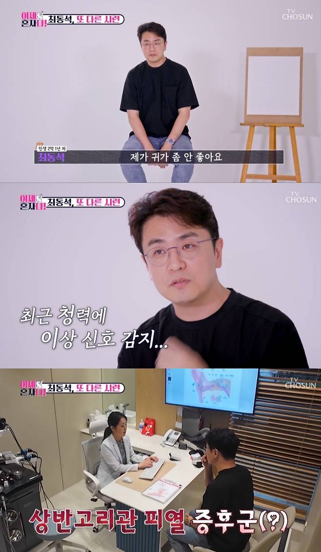 특히 수술이 잘못되면 청력을 아예 잃을 수 있다고 밝힌 최동석은 왼쪽 귀에 '경도 난청'이라는 진단을 받았고, "사실 쉽지 않았다. 9시 뉴스를 할 때가 증상이 심했다. 제 목소리 때문에 눈이 떨렸다"고 토로했다.