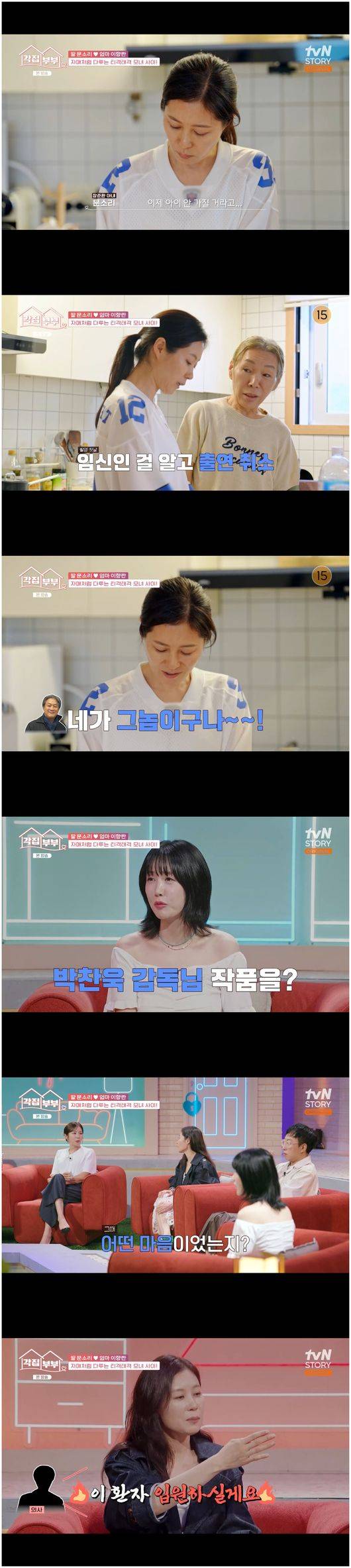 문소리는 “촬영 첫날 임신인 걸 알았다”라며 고개를 끄덕였다. 이향란은 “박찬욱 감독이 연두를 보지 않았냐. 연두더러 ‘얘가 걔야? 이놈이 너구나’라고 했다”라며 박찬욱을 탄식하게 했던 문소리의 아이에 대해 이야기를 했다.