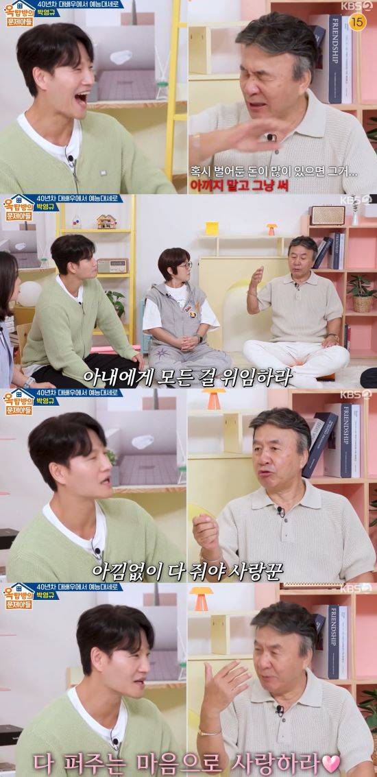 또 김종국에게 "아내가 생기면 아내한테 모든 걸 줘라"라며 조언을 건네기도. 이에 김숙이 "선생님께서는 모든 통장을 맡기셨냐"고 묻자, 박영규는 "그렇지는 않다"라고 답해 예측할 수 없는 토크로 웃음을 선사했다.